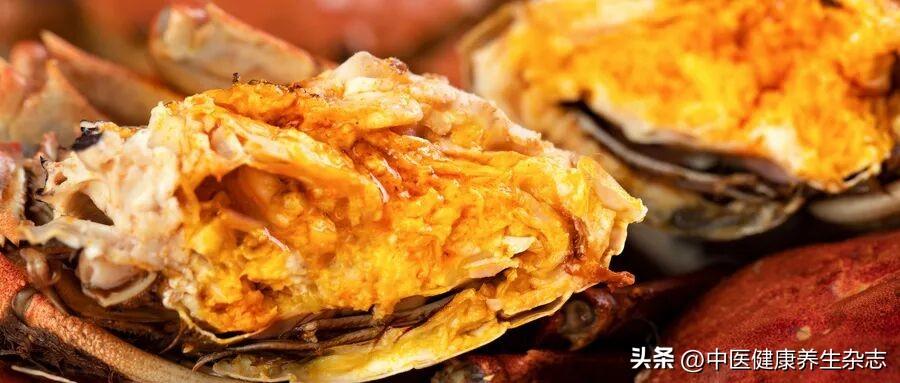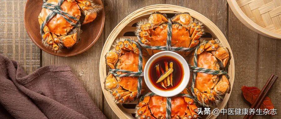 螃蟹,氣腥、味鹹、偏涼,入肝經,具有益陰補髓之效。螃蟹是秋令美食,生烹、鹽醃、酒浸都各具風味,以洗淨、熟透爲宜;忌與柿子同食,常以姜醋蘸食,既增鮮味,又減寒涼。