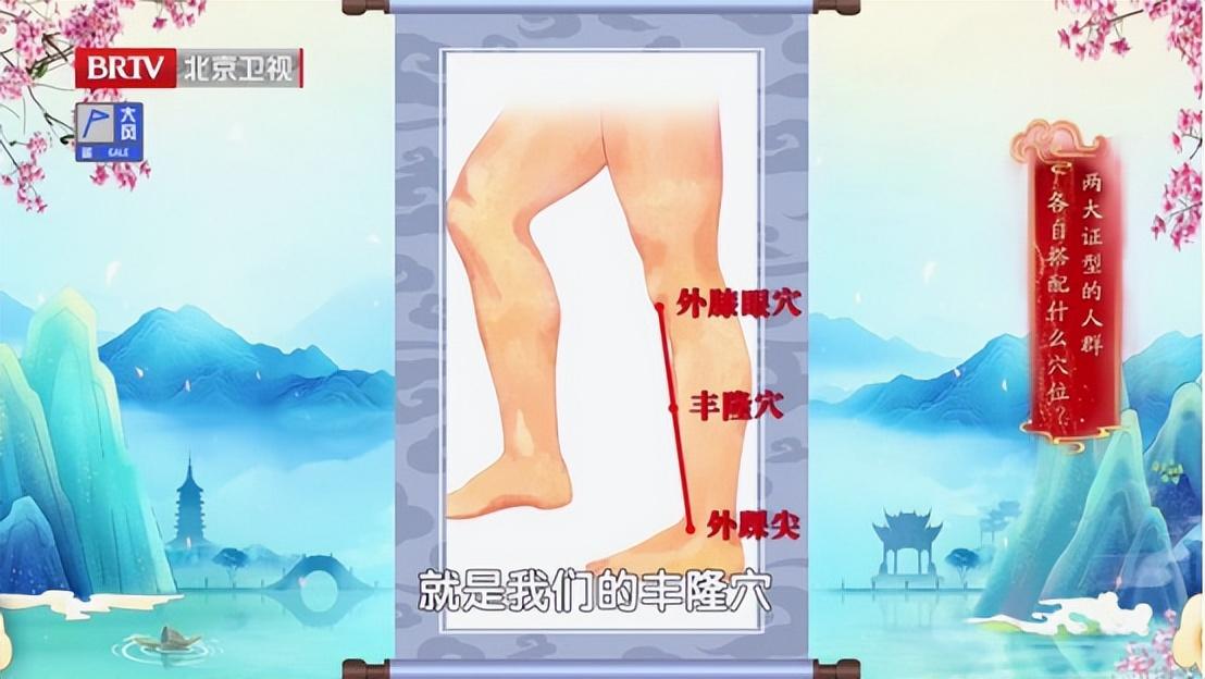 在髕骨韌帶旁邊靠外側也就是外膝眼的地方有一個外膝眼穴,外膝眼穴和外踝尖中點爲豐隆穴,是化痰溼的重要穴位。
