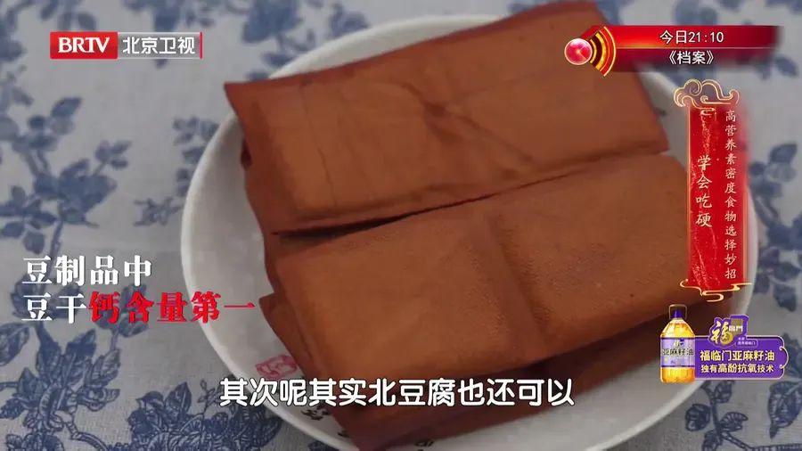 以補鈣爲目的喫豆製品,應率先選擇豆腐乾,每100g豆腐乾含鈣447mg,可以滿足55.9%的鈣每日推薦攝入量(800mg)。