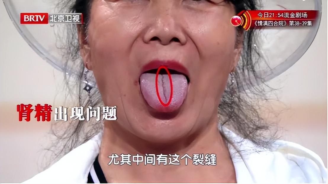舌質白膩,中間出現裂縫,說明腎精出現了問題。