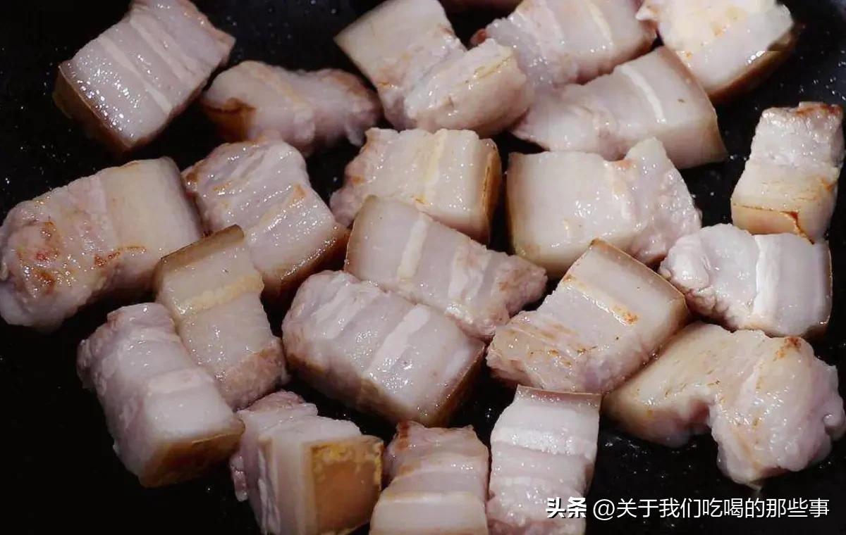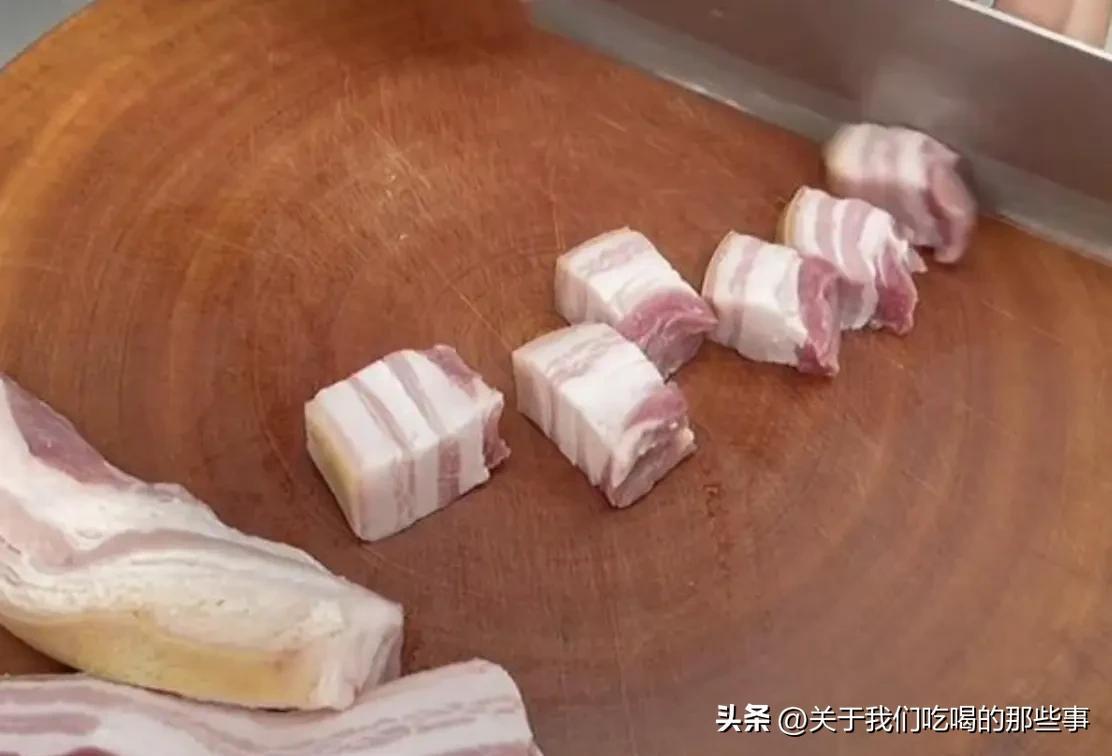 做這道菜,五花肉一定要選好,不宜選擇太肥的,層次分明的最好。