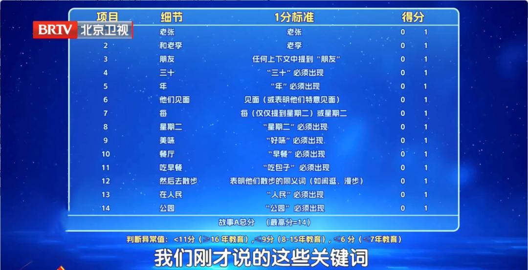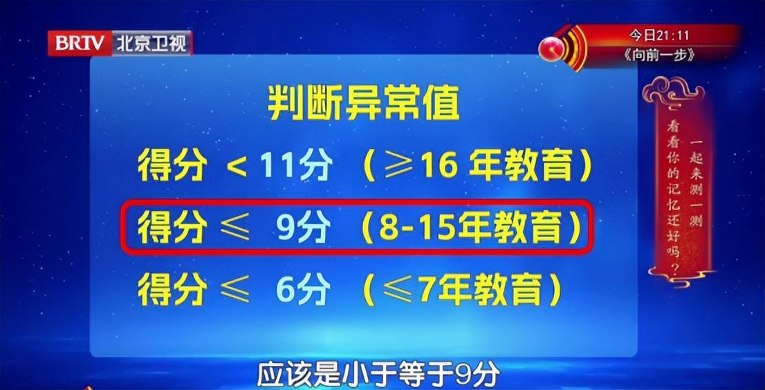 - 受教育年限≥16年,能說對的細節少於11個,也就是得分<11,可能有問題;