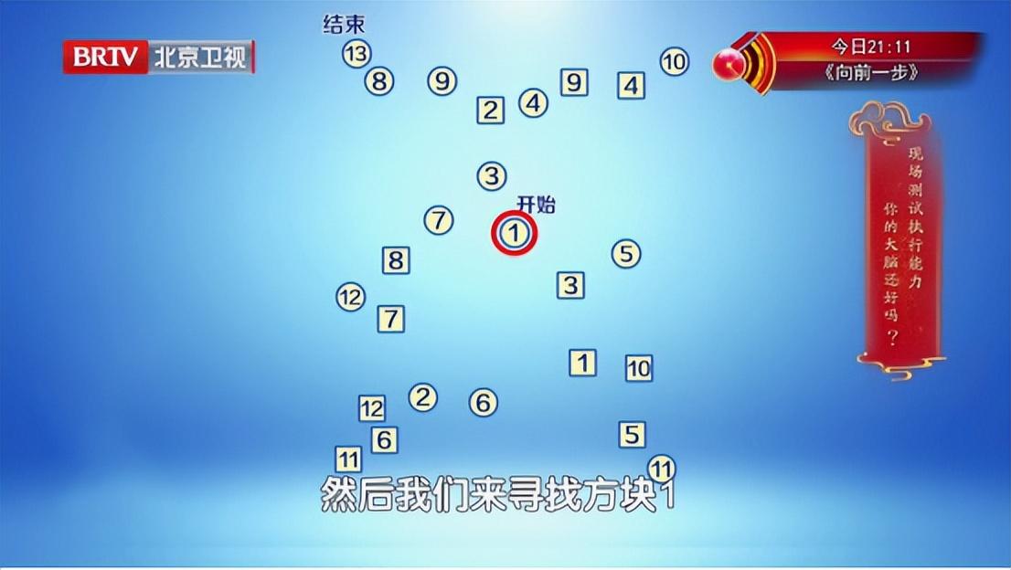 準備一張像下圖一樣畫有“圓圈數字 和“方塊數字”的紙,按“圓圈1→方塊1→圓圈2→方塊2……” 的順序連線,要求在188秒內完成。