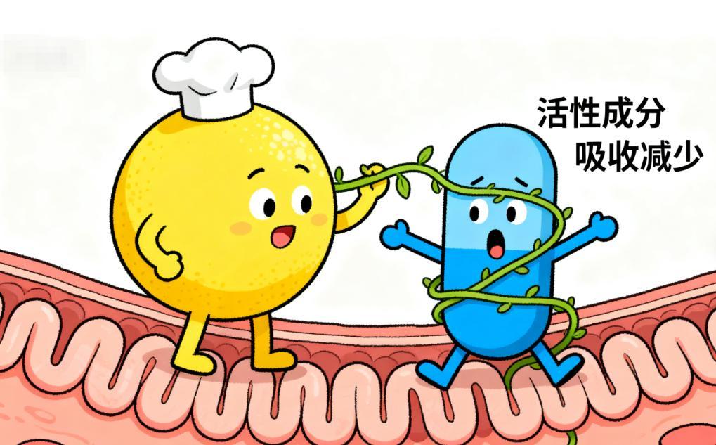柚子中含有的黃酮類、呋喃香豆素等活性成分,使藥物在體內吸收減少。