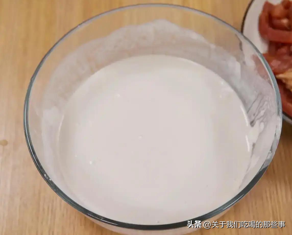 竅門二,調麪糊時加些啤酒,酥肉炸好蓬鬆酥脆,非常好喫。