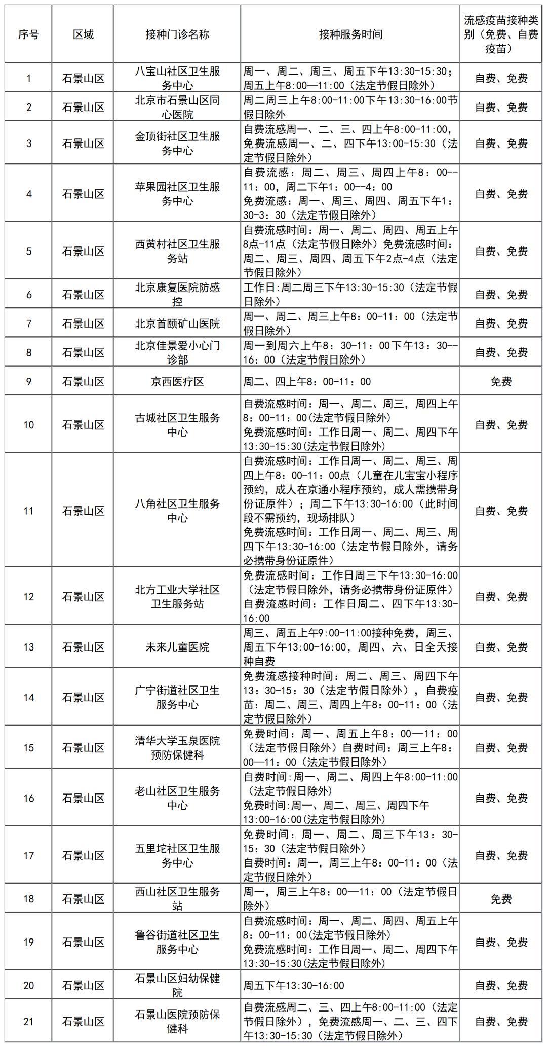 爲方便市民朋友接種,各區科學設置流感疫苗免費和自費接種門診,並在北京市疾控中心網站上公示接種門診信息,方便市民查詢就近選擇接種。同時,市民朋友還可以通過“京通”小程序、首都疫苗服務APP、接種門診電話、現場登記等多種方式開展預約接種。