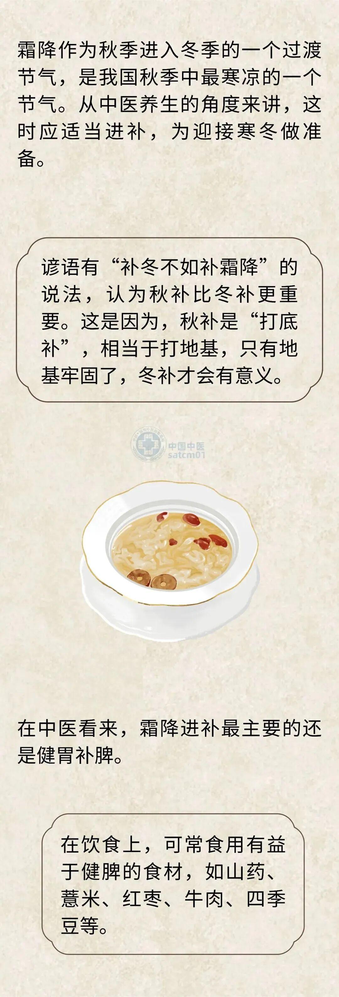 霜降時節天氣由涼轉冷,氣溫變化幅度之大常常令人難以適應,稍有疏忽,容易感寒生病或舊病復發。此時養生當以平補潤燥、強身禦寒爲重點。