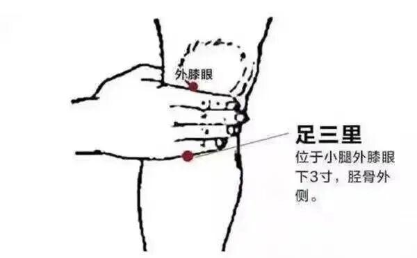 足三里穴在小腿外側,犢鼻下3寸,犢鼻與解溪連線上。