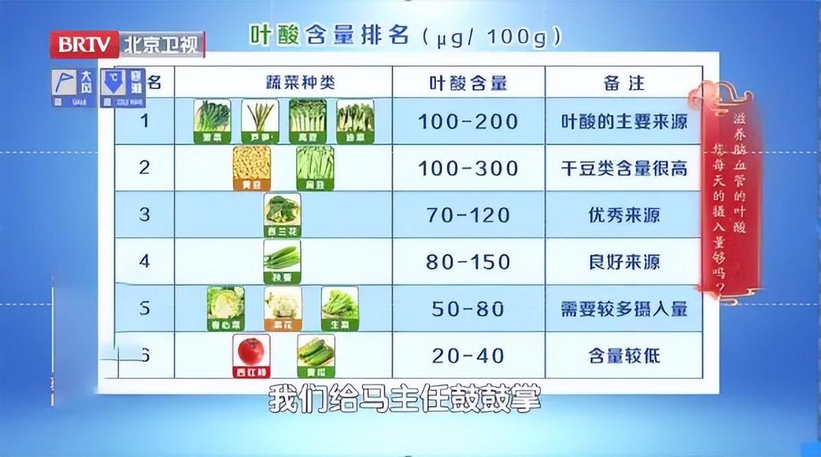 ①菠菜、萵苣、蘆筍、油菜:葉酸含量在100-200(μg/100g),是葉酸的主要來源。