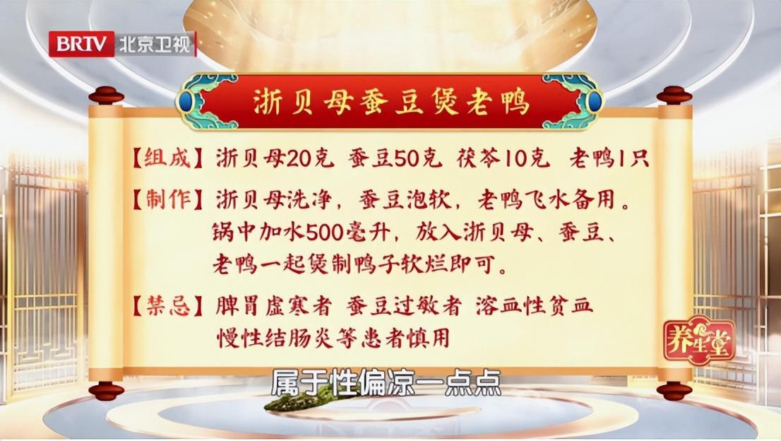 浙貝母洗淨,蠶豆泡軟,老鴨飛水備用。鍋中加水500毫升,放入浙貝母、蠶豆、老鴨一起煲制鴨子軟爛即可。