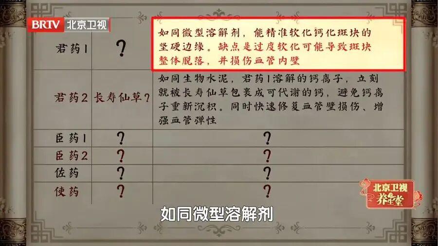 專家帶來了臨牀上治療血管鈣化的藥物,分別有君臣佐使共6味藥組成。