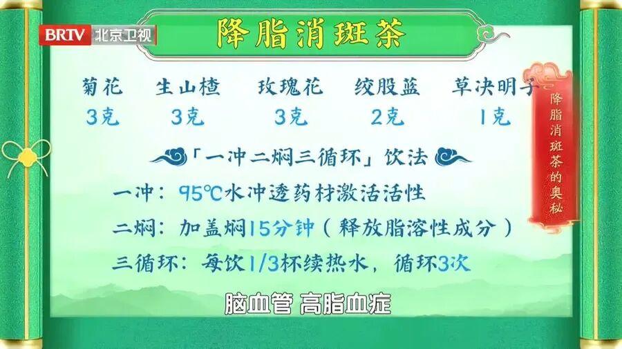菊花3克、生山楂3克、玫瑰花3克、絞股藍2克、草決明子1克。