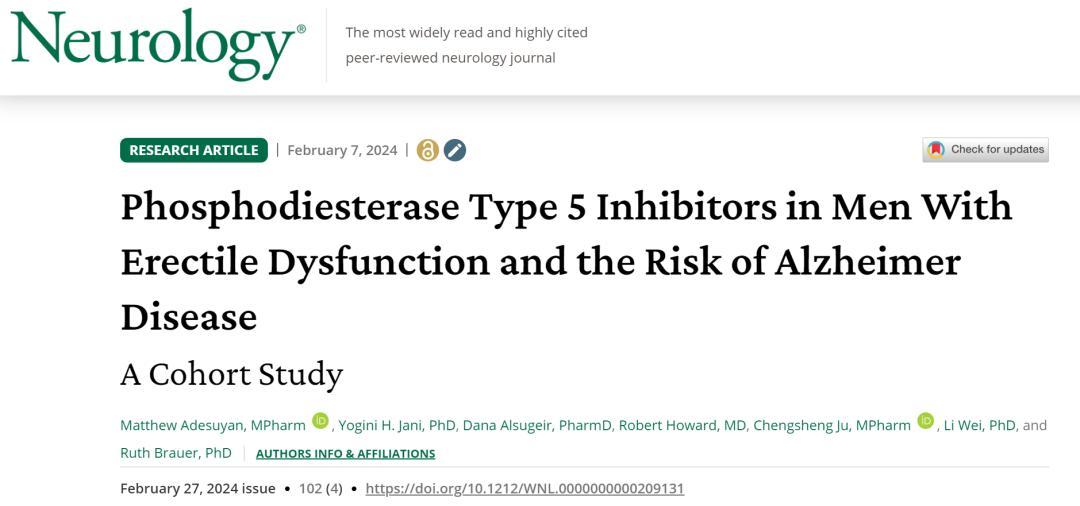 2024年該團隊排除年齡、性別等干擾後,仍發現西地那非干預使阿爾茨海默症風險降30%-54%。同年,《Neurology》薈萃研究亦驗證,其使用者老年癡呆風險顯著低於對照羣體。