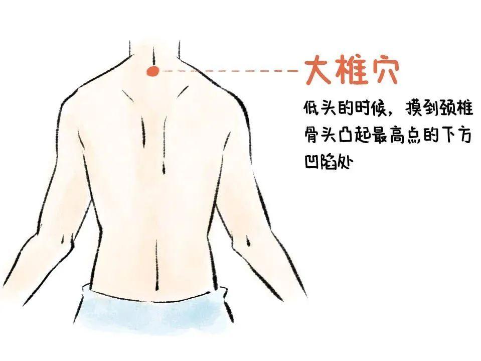 大椎穴是氣血之匯,是督脈的重要穴位,長期灸之,能改善風寒感冒導致的惡寒、發熱、怕冷、咳嗽、頭痛、頭昏、頭脹等病症;另外,對於全身怕冷的人,灸之可通絡散寒。