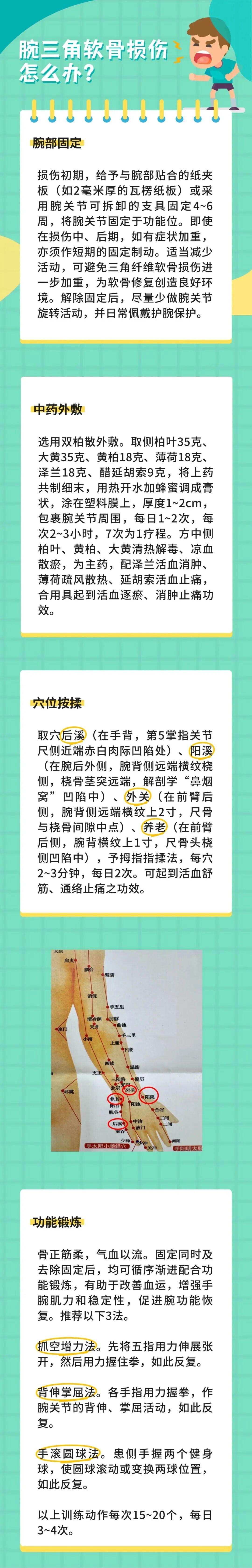 腕三角軟骨爲一塊纖維軟骨組織,略呈三角形,位於手腕關節內側,易裂傷難恢復。此病屬於筋傷範疇,中醫認爲,外傷勞損,可致局部筋脈受損、氣血瘀阻、關節不利。除避免過度運動和扭傷外,建議試試以下4小招。