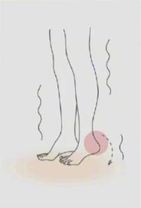 抬起腳後跟再落下,如此反覆顛足,讓腳跟有節奏地輕震地面。