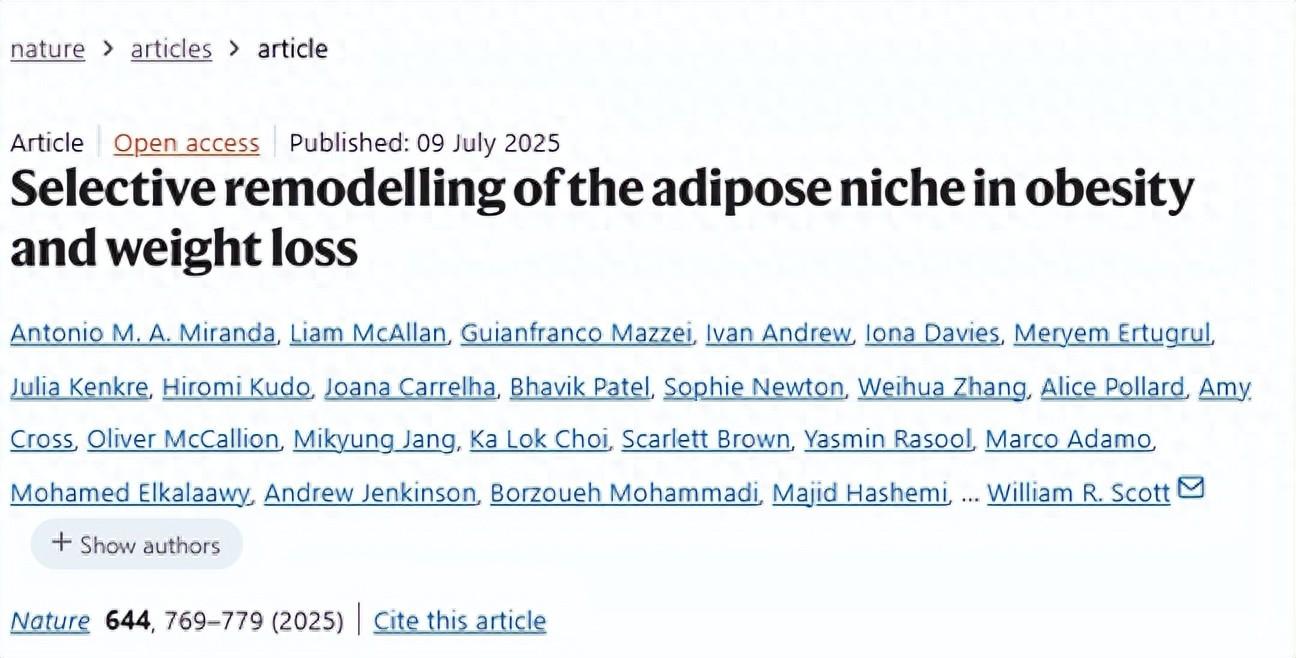 [1] Miranda, A.M.A., McAllan, L., Mazzei, G. et al. Selective remodelling of the adipose niche in obesity and weight loss. Nature (2025). https://doi.org/10.1038/s41586-025-09233-2