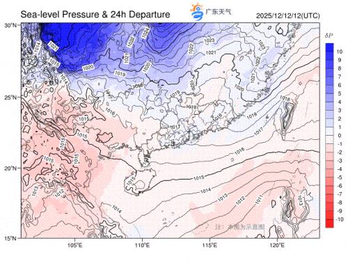 @廣東天氣 預計,12月12日夜間,新一股中等偏強冷空氣前鋒到達南嶺,清遠及韶關的北部市縣氣溫率先下降。12月13~14日,冷空氣快速南下,自北向南影響我省,中北部市縣有小雨局部中雨,全省平均氣溫降幅5~8℃。