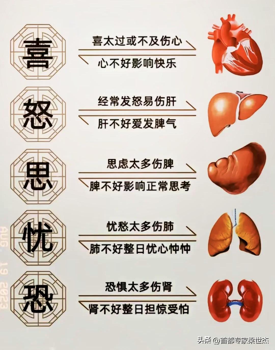 您瞧瞧,這喜怒憂思悲恐驚啊,是人的正常情緒,就跟那天氣似的,有晴天,有雨天,有陰天。可要是放任任何一種情緒滋長,那就像那洪水氾濫,會產生疾病。這就好比您種莊稼,要是隻給一種肥料,不給別的,那莊稼肯定長不好。