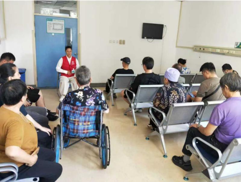 2023年5月,醫務社工陳繼豔被派駐到北京同仁醫院社會工作部,專職開展志願服務項目設計與組織、志願者隊伍建設與管理工作。她曾在北京多家醫院從事醫務社會工作,經驗豐富。人從哪裏來?志願者招募之路並不平坦。最初,陳繼豔跑遍了醫院周邊的社區,挨家挨戶宣傳,但收效甚微。後來通過參加志願者培訓活動,她逐漸結識了不少有志於志願服務的退休阿姨們,經口口相傳,這個志願者隊伍越來越龐大,甚至有的專門從通州梨園趕來。“我們這些老夥伴,最懂老人的需求。”志願者楊素英說,“我們知道,老人不是故意記不住,是年紀大了,聽力、理解力都在下降。那就慢慢說,一遍不行說兩遍,兩遍不行說三遍。”