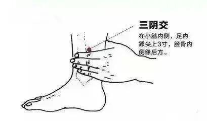 【位置】內踝尖上三寸,脛骨內側面後緣。足太陰,少陰,厥陰交匯處。