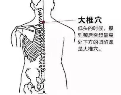 【位置】頸後正中,第7頸椎棘突下凹陷處。