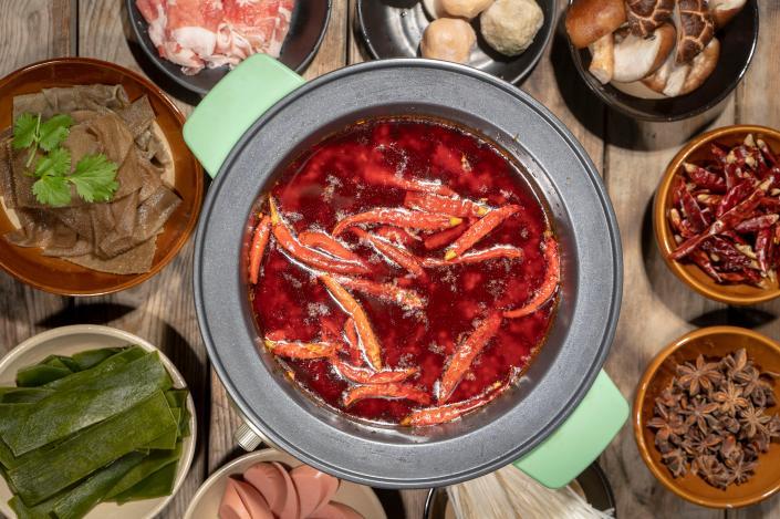 骨湯鍋底憑藉醇厚口感圈粉無數,可其本身嘌呤含量不低,且涮煮時間越長,嘌呤濃度越高,高尿酸人羣和痛風患者要儘量避開。