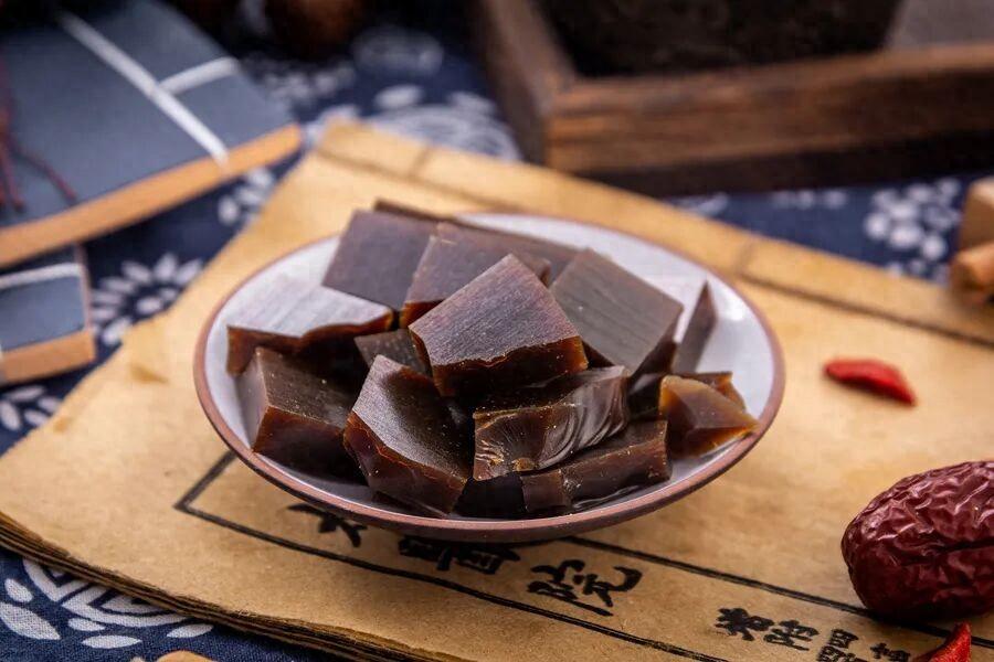 阿膠以養血爲主,尤其適合貧血人羣,可再加上黑芝麻、核桃仁、黃酒、枸杞子等食材熬製成阿膠糕,益氣補血、滋補肝腎,作用更全面。