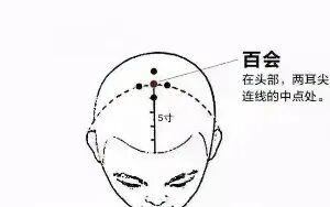 定位:兩耳尖連線定位法:坐正或站立,將雙手拇指放在兩側耳尖(耳廓最高點),兩手中指在頭頂正中的交匯處即是百會穴。