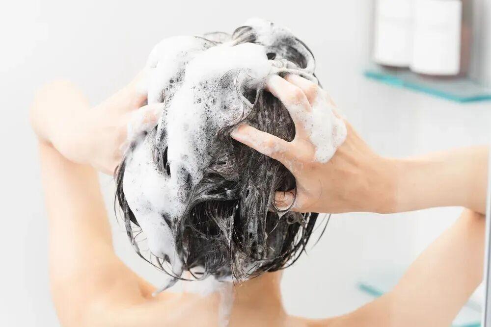 步驟二:把洗髮水在手心揉搓出泡沫,再用指腹以打圈的方式按摩頭皮。重點清潔髮際線、頭頂、後腦勺這些油脂容易堆積的區域,按摩時間建議30秒~1分鐘,以便讓泡沫充分溶解污垢。