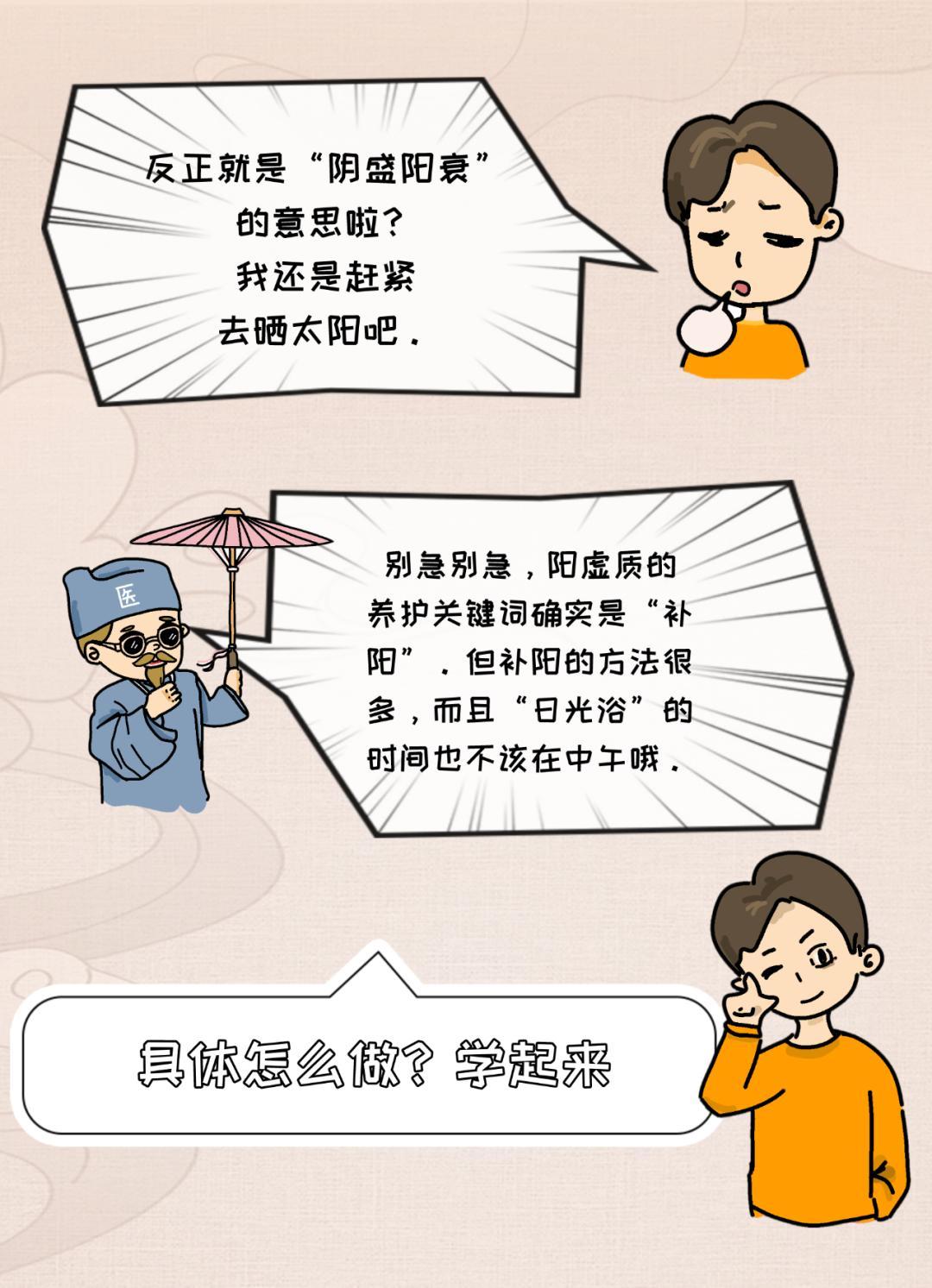 根據中醫學“春夏養陽,秋冬養陰”的觀點,陽虛質鍛鍊時間最好選擇春夏,一天中又以陽光充足的上午爲最好時機,每次不得少於30分鐘,其他時間鍛鍊則應當在室內進行,冬季則要避寒就溫。所以,別再大中午去曬太陽啦!