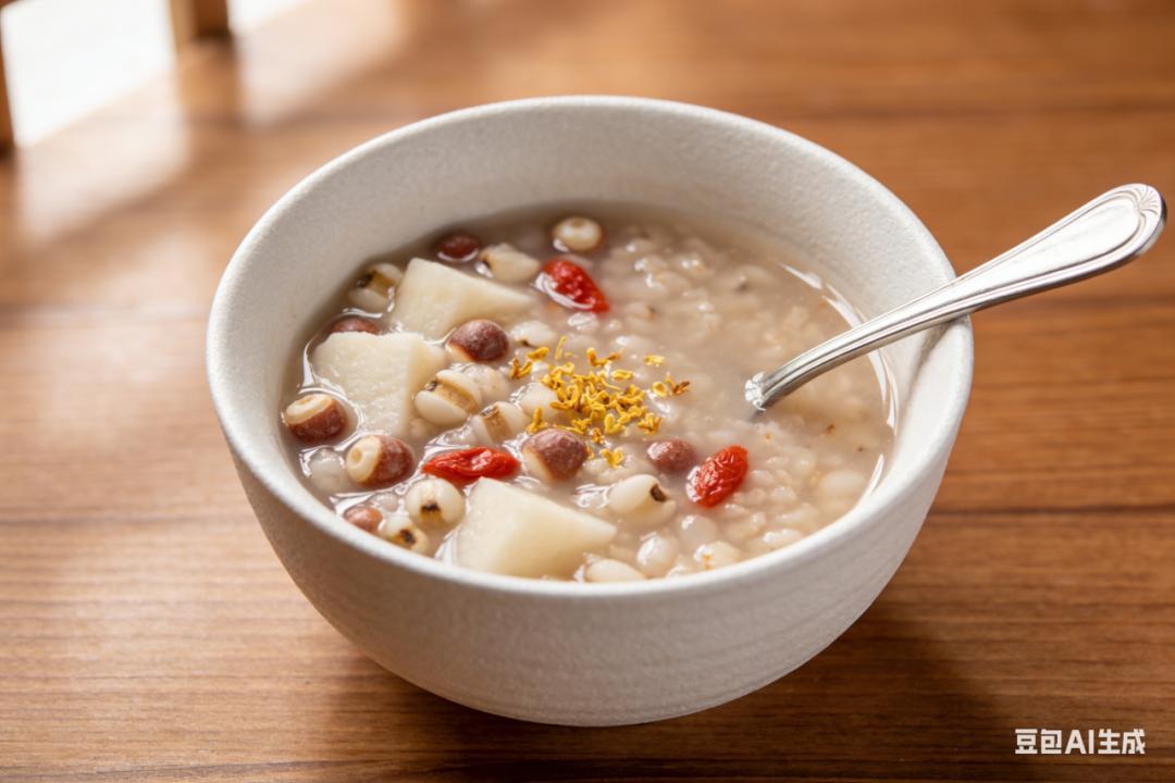 做法:先將大米洗淨備用,再將芡實、蓮子、薏苡仁洗淨後用清水浸泡1個小時。山藥去皮,洗淨切成小塊。將芡實、蓮子、薏苡仁、大米下鍋,加入適量清水,大火燒開後轉中火熬煮1個小時。最後放入山藥,轉文火,再熬製30分鐘即可。