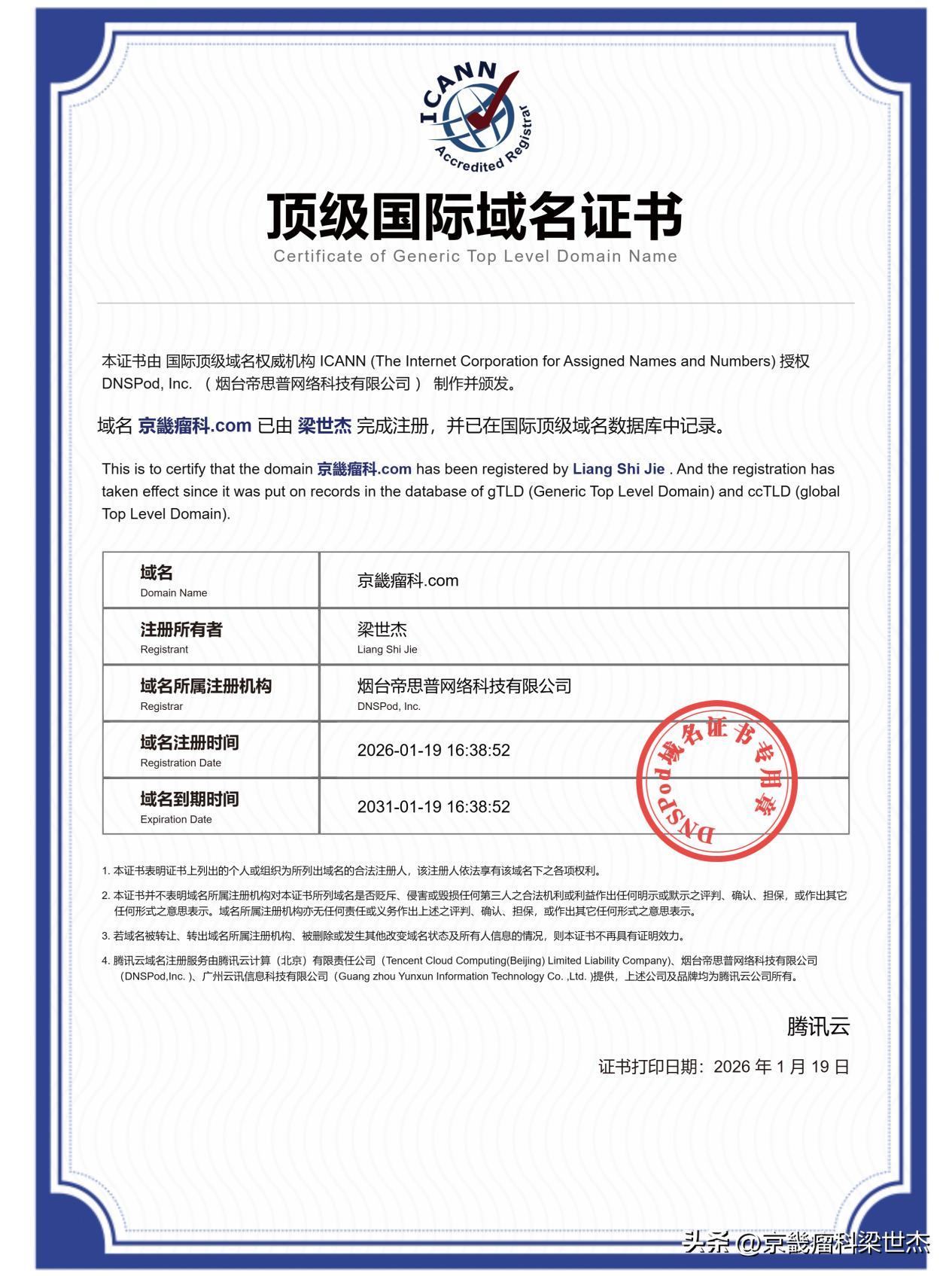 據相關數據顯示,在醫療健康領域,擁有獨立且專業域名的機構,其網絡諮詢量和患者預約量比沒有域名的機構高出至少 30%。這足以說明,一個好的域名就像是一個強大的“信任錨點”,能夠吸引更多的流量和關注。梁世傑主任科研團隊註冊的“京畿瘤科.com”,無疑爲京畿瘤科在互聯網上樹立了一個專業、權威的形象,讓更多的人能夠快速、準確地找到他們,爲後續的品牌推廣和市場拓展奠定了堅實的基礎。