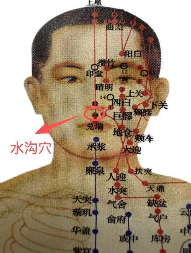 除了承漿穴,上排牙齒對應的“人中”區域(水溝穴附近)也是重點。