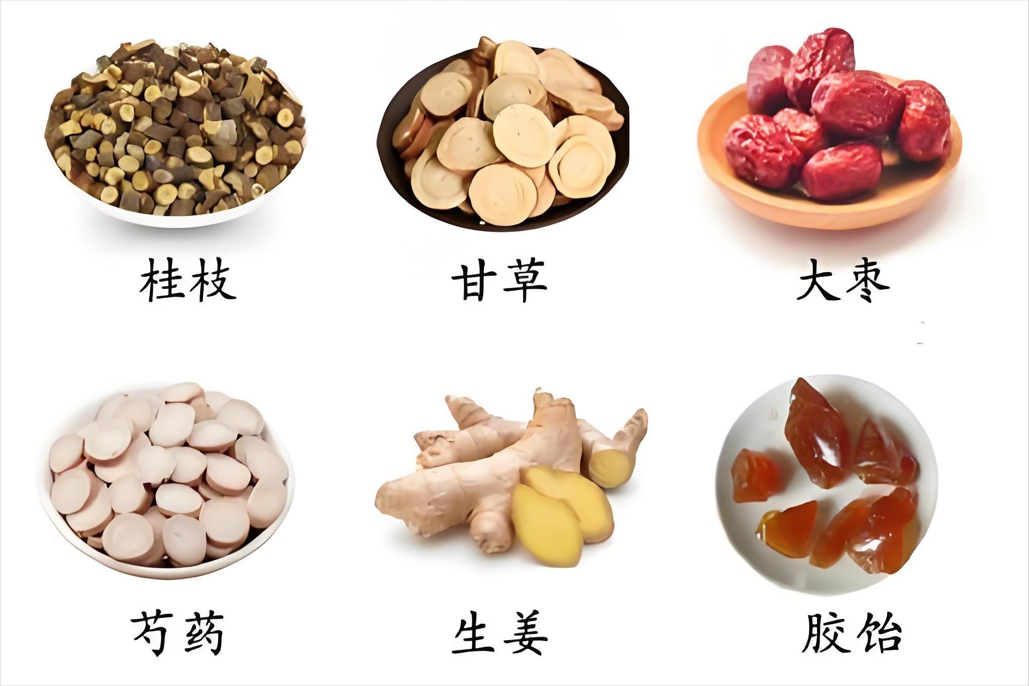 桂枝辛溫,能溫陽祛寒,與飴糖配伍,增強溫中補虛的作用;芍藥酸苦微寒,既能養陰,又能助飴糖緩急止痛,還能與桂枝調和營衛,調節人體的氣血運行 ;生薑辛溫,溫胃散寒;大棗甘溫,補脾益氣,二者合用,既能增強脾胃的運化功能,又能調和諸藥 ;炙甘草益氣和中,調和藥性,協助飴糖、桂枝、芍藥等藥物更好地發揮作用 。這幾味藥相互配合,共同起到溫中補虛、和裏緩急的功效。