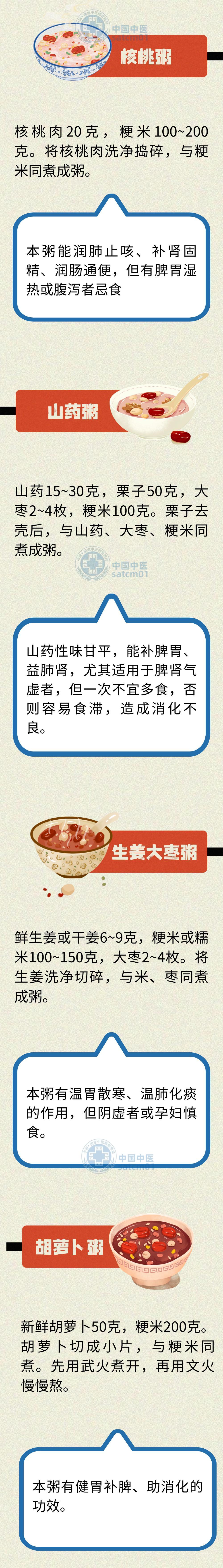 深冬到了,天氣愈加寒冷,此時陽氣最弱,邪氣容易傷害人體。喝粥不僅對胃好,在粥裏面添加一些食材,還能起到更多的養生保健作用。粥的種類繁多,簡單、質樸的白粥在其他材料的搭配下有了千般滋味,滋養着中國人的味蕾。