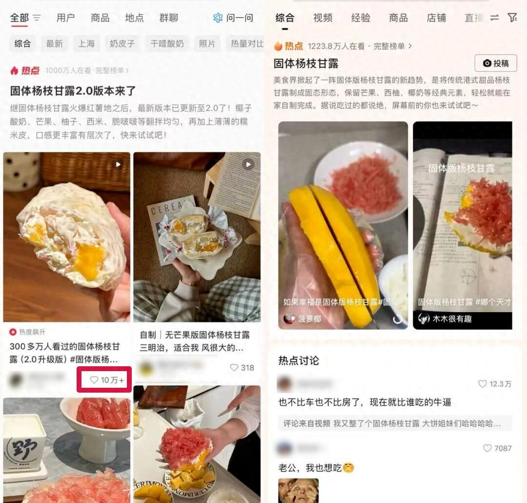 網友在社交媒體分享”固體楊枝甘露”的製作方法