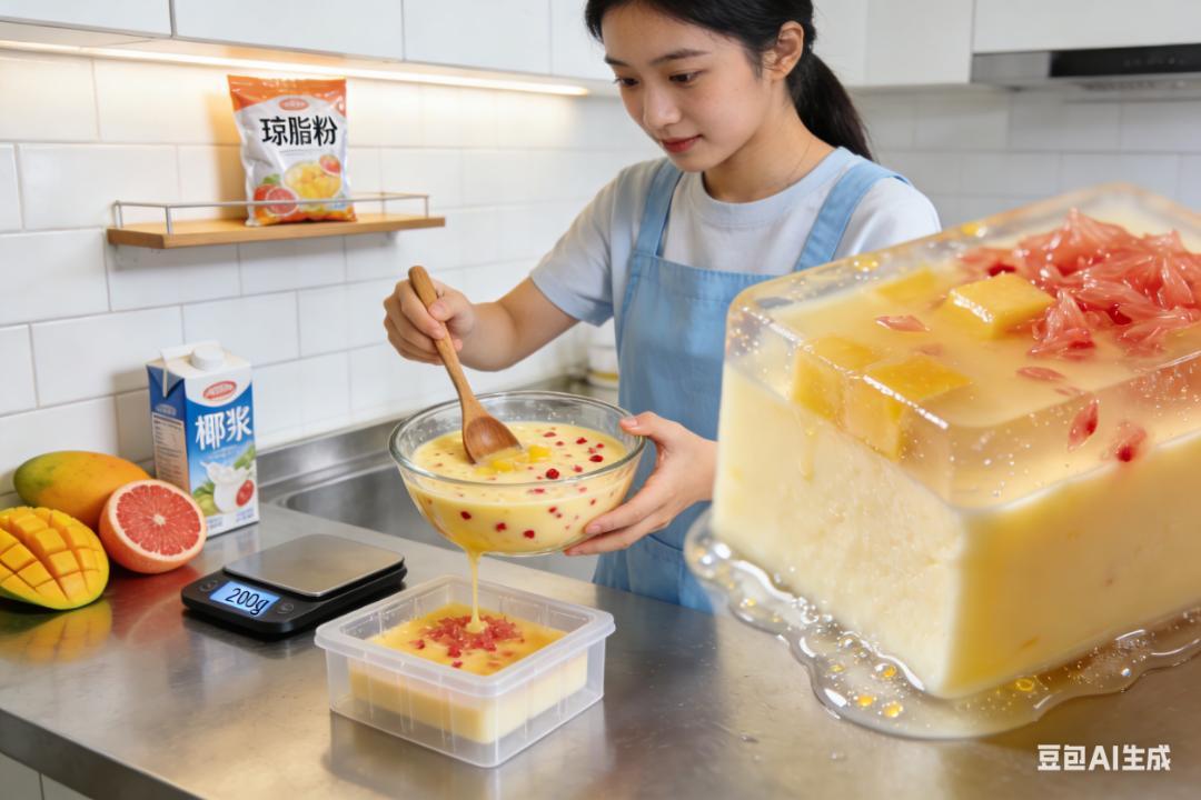 入冬以來,一款“固體楊枝甘露”在社交平臺上悄然走紅。與傳統液態飲品不同,這款創意甜品將芒果泥、西柚果肉與椰漿混合,加入瓊脂凝固成塊,再配以西米等配料,口感新奇。