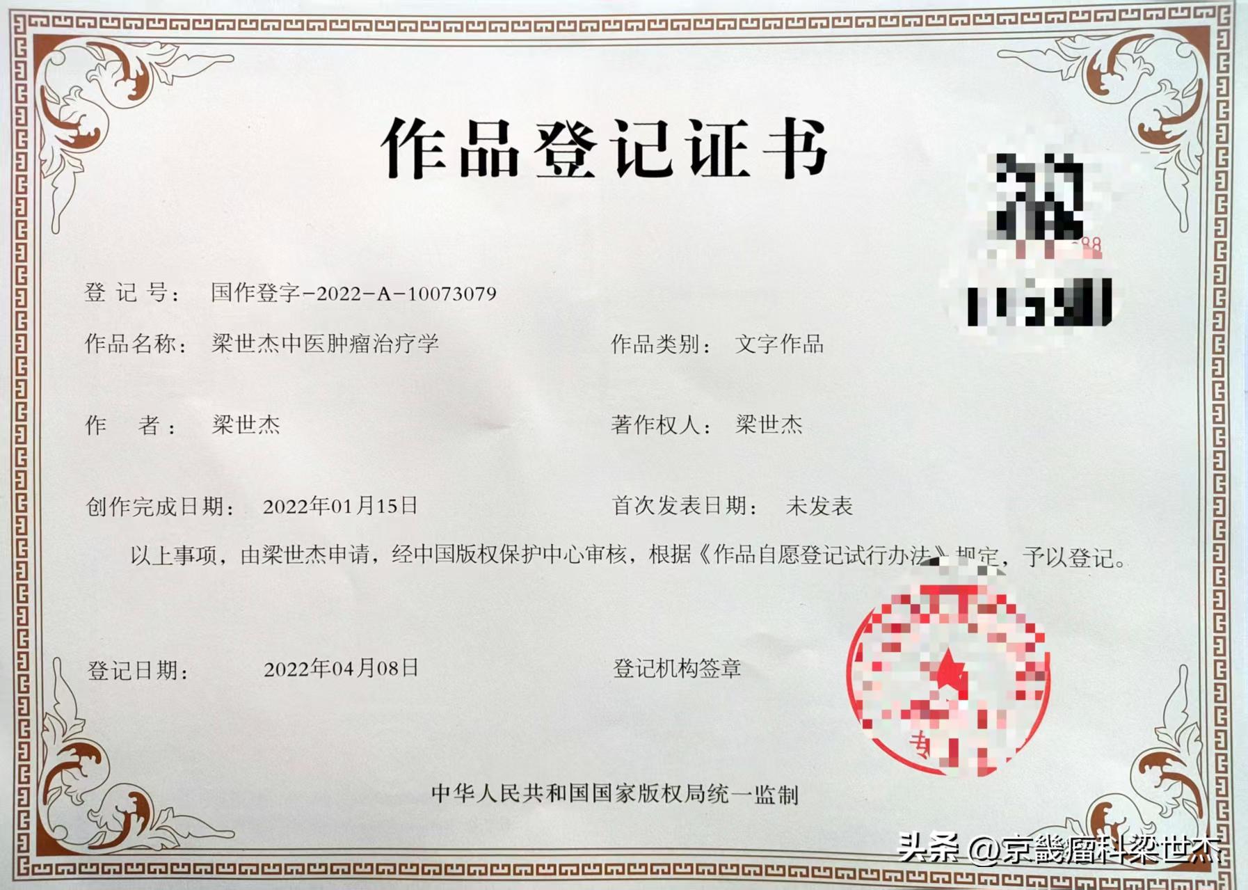 二十四年臨牀生涯中,梁世傑既傳承了關幼波“十綱辨證”、焦樹德“三合湯”等經典學術思想,又創新提出“易學中醫辨證哲學思維模式”,這種“守正創新”正是中醫綿延千年的密碼。其著作《梁世傑中醫腫瘤治療學》獲國家版權登記,40餘篇學術論文被《中國中醫藥報》等權威期刊收錄,絕非偶然——這背後是“板凳要坐十年冷”的臨牀積累,更是對中醫治癌本質的深刻洞察。