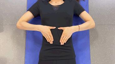 仰臥,兩手掌放在小腹部,沿着腹部外側,邊揉邊緩慢移動,手碰到肋骨後,慢慢邊揉動邊向中間靠攏。
