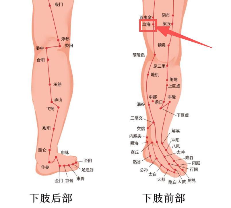定位:在小腿內側,當脛骨內側髁後下方凹陷處。足太陰脾經的合穴。
