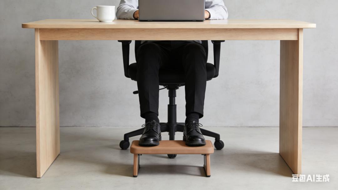 如果椅子過高,可在腳下放個小板凳,讓大腿與地面平行。這種情況下蹺二郎腿,腿會不舒服,自然就不想再蹺了。