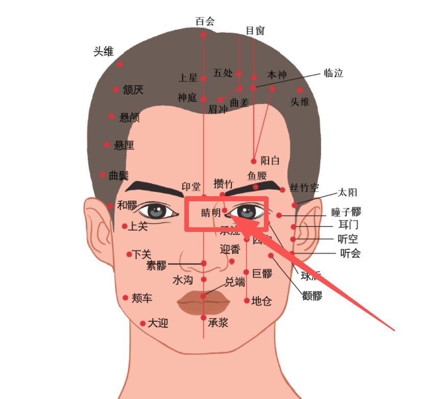 位置:眉毛內側端,眼角內側約一橫指處。