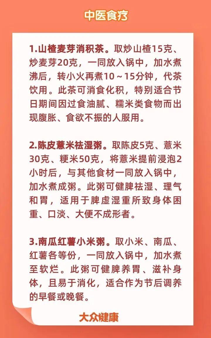 飲食“溫、軟、淡、熟”是中醫飲食調理的核心原則。春節過後,大家可以通過一些藥食同源的食物調理脾胃。平素脾虛的人可以選擇山藥、蓮子、芡實等補脾益胃之品,以及陳皮、山楂、麥芽等消食除脹之品;胃部怕冷的人羣可適當多食生薑、胡椒等;口乾口苦、舌苔黃膩的溼熱體質人羣可適當多食薏米、白蘿蔔、蓮藕等。
