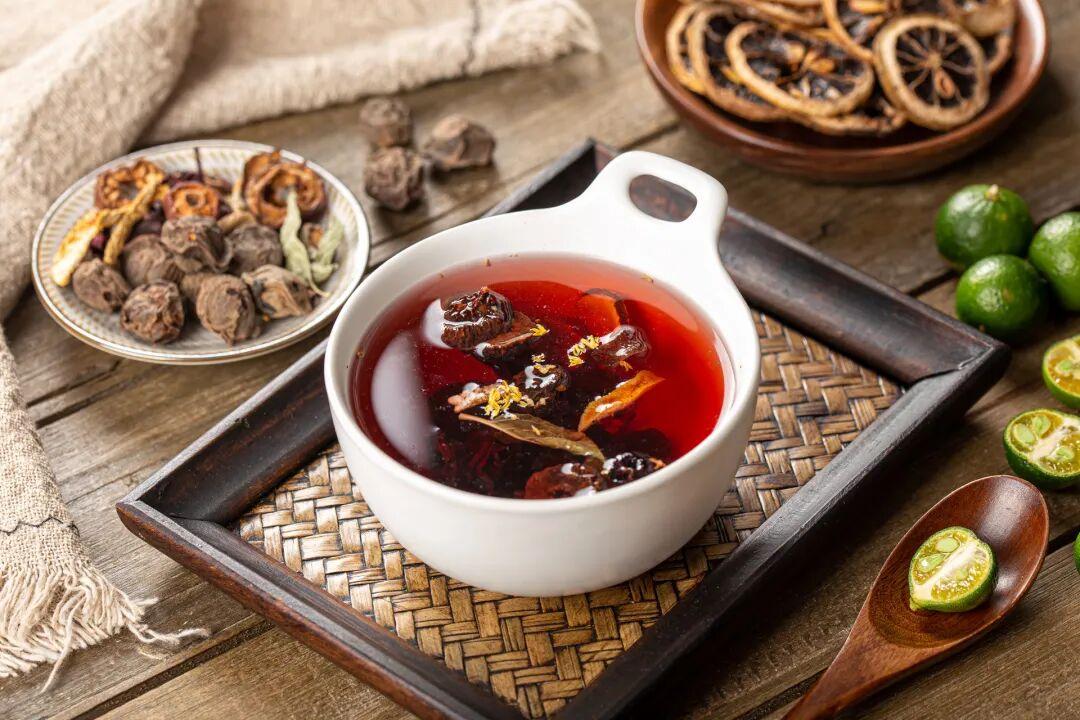山楂、鹹三稔可沖水飲用,有治喉嚨痛之功能。而且山楂又具開胃消滯之用途;據說鹹三稔也可解 “溼毒”。李子味道甘酸,性平,有清肝滌熱,生津利水之效。陳皮有化痰等作用。無花果味甘性平,功能清熱潤腸,消腫解毒。金橘果肉,酸中帶甘,果皮則含有大量揮發油,故生啖略嫌酸澀。其又有消食下氣,開胸快膈及化痰止咳之效。杏味道甜甜酸酸,有潤肺生津,止渴定喘的功效。