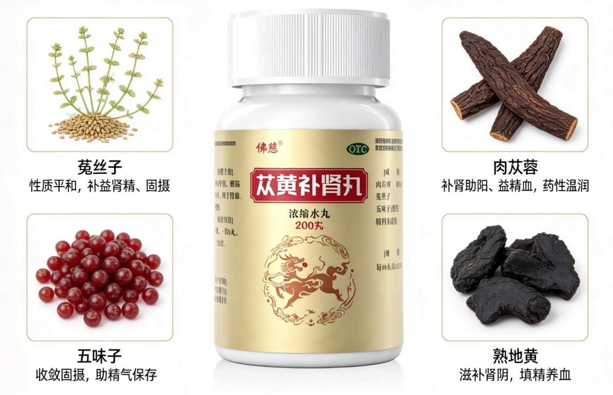 其中,菟絲子能補腎益精,藥性相對平和;肉蓯蓉溫補而不燥,能補腎助陽、益精養血;熟地黃重在滋補腎陰、充養精血;五味子(酒蒸)則偏於收斂固攝,幫助把精氣更好地守住。這樣的配伍,不是隻圖一時“補上去”,而是更強調把身體的根本慢慢養起來、穩下來。