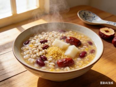 把日常食用的大白米飯,分出一半換成糙米、燕麥、小米或者薏米吧!《中國居民膳食指南2022》推薦成年人每天攝入穀類200~300g,全穀物應占穀物的1/4~1/3,約爲50~100g。全穀物富含膳食纖維、B族維生素和抗氧化物質,能夠穩定血糖,且爲大腦提供持續的能量供應。早上來一碗五彩健脾粥(薏米+紅豆+小米+紅棗+山藥),既暖胃又提神,一整天都元氣滿滿。