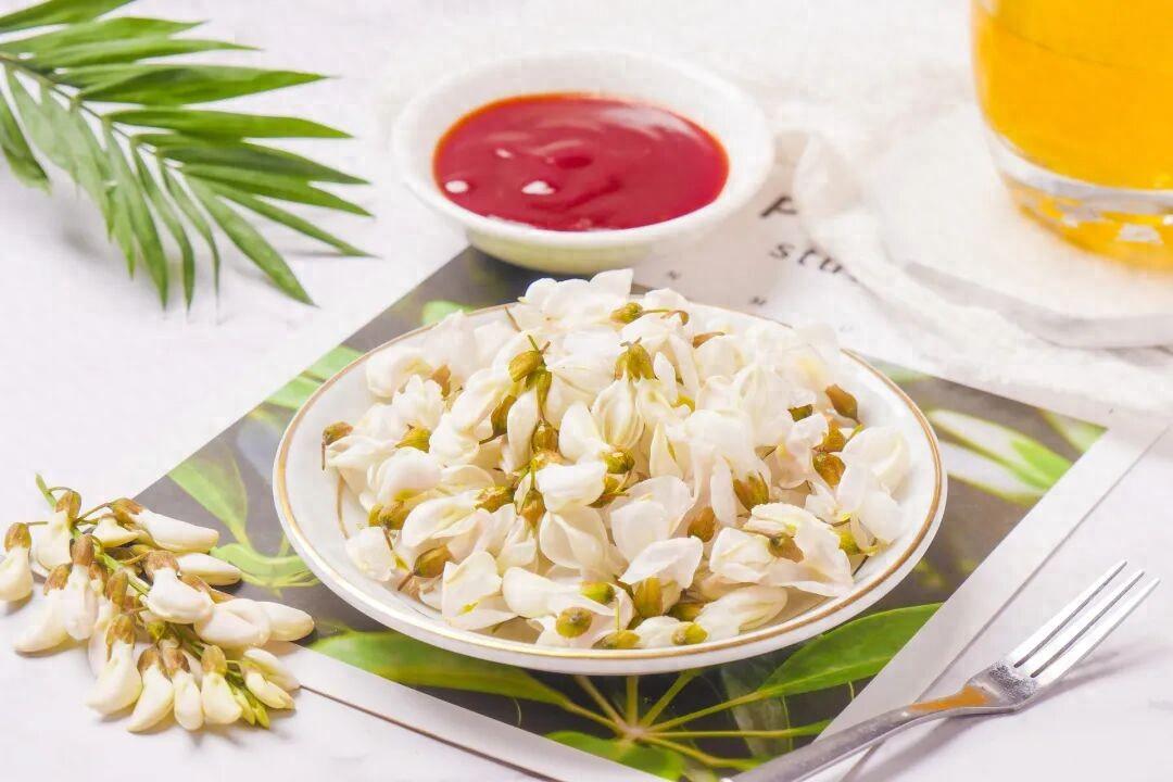 槐花食用方法較多,可做糕、粥、湯、拌菜、燜飯等,但必須洗淨、焯水後方可食用。現列舉部分,以供選用。