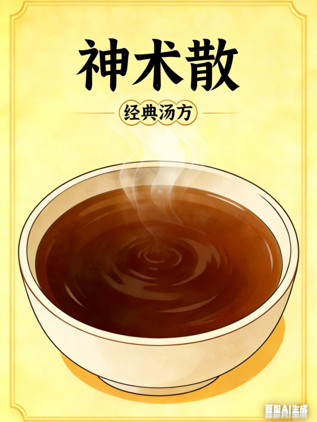 臨牀應用需嚴格辨證,神術散專爲寒溼困脾、風寒外束而設,若出現大便黃稠、舌苔黃膩、口苦口臭、發熱口渴等溼熱證,絕對禁用,否則會“火上澆油”;陰虛火旺者(口乾咽燥、手腳心熱)也需慎用。