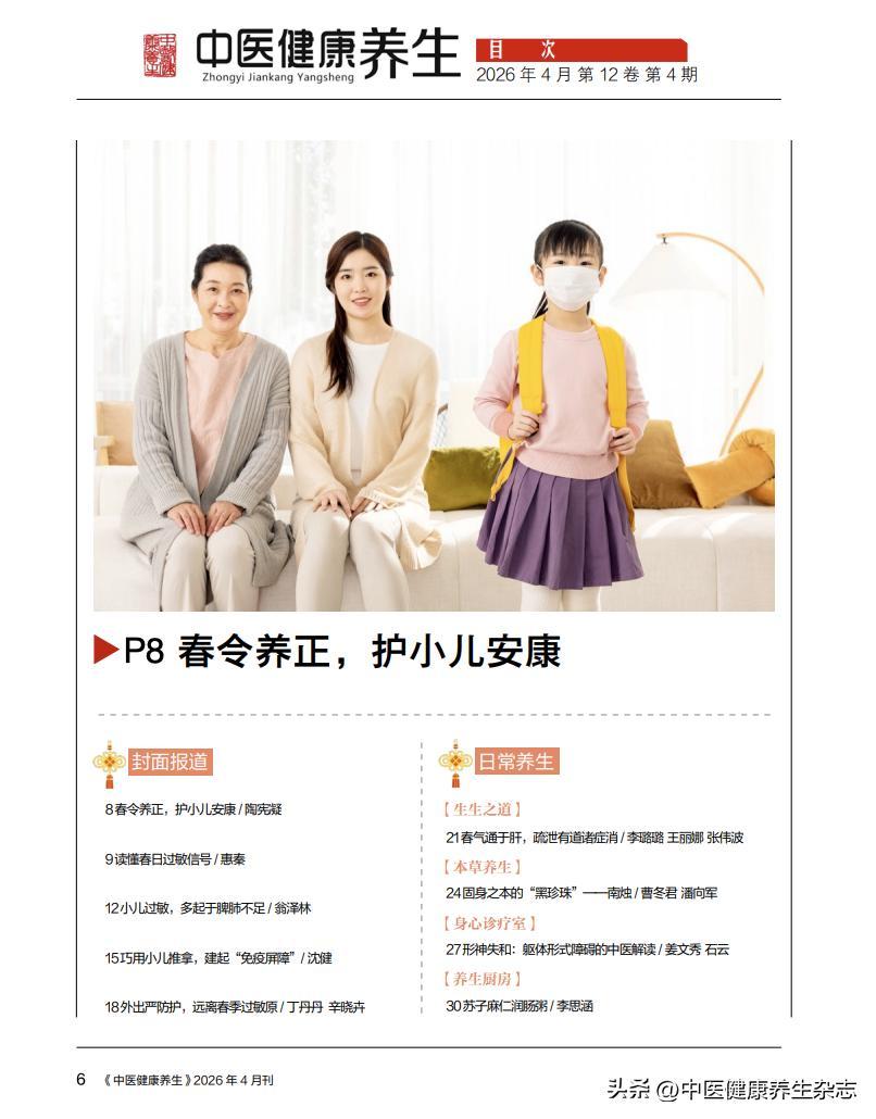 中醫學認爲,小兒養正重在固本,正氣足則外邪不侵。本期封面報道從中醫視角解析小兒春季過敏根源,釐清調理誤區,給出安全實用的護娃方案。願本期內容助你守住孩子的春日正氣,讓孩子安然度春、健康成長。